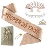 NEONSKY Fascia Compleanno Donna con Corona e Spilla Mini Corona, Set Regalo Elegante per 18 21 30 40 50 60 70 80 Anni, Include Fascia Personalizzata, Corona, Biglietto con Busta Kraft (30 anni)