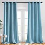 NICETOWN Living Room Blackout Curtains – Window Treatment Thermal Insulated Solid Grommet Blackout Panels/Drapes for Nursery (Teal Blue=Light Blue, Set of 2 Panels, 52 by 95 Inch)