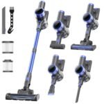 • ✦[Flexible LED Motorized Floor Brush Head] This lightweight portable stick vacuum cleaners for the home with the LED headlights of the floor brush illuminate the dust, debris, and hair under furniture or other hard-to-reach dark corners and track it. Flexible 150° sideways rotation and 90° up and down rotation let you clean the dust under furniture and bed.