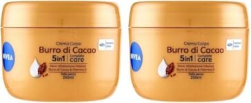 NIVEA Crema Corpo Burro di Cacao 250ml, Crema corpo idratante 48 ore, Crema corpo idratante pelle secca arricchita con Siero Idratazione Intensa, Burro di Cacao & Vitamina E (Confezione da 2) is available on Amazon at best discounted online price. Original price of this product is € 17.8. You can buy this product at discounted rate € 6.9.
