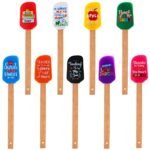 - Cute Designs: silicone spatulas for kitchen are designed with 9 styles with assorted bright colors and sentence printings and classic classroom elements, such as globe, book, pen, stationery, etc., warmhearted and noticeable, which can also nicely show your appreciation to your teachers