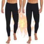 OBFUN 2 Pack Thermal Underwear for Men Pants Long Johns Bottoms Base Layer Cold Weather Fleece Lined Leggings Black Large