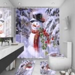 Omebero Red Scarf Snowmans Bathroom Sets with Shower Curtain and Rugs, Toilet Lid Cover, Bath Mat, Soft Fabric Cute Christmas Snowman Shower Curtain Set for Bathroom, Bathroom Decor Shower Curtains is available on Amazon at best discounted online price. Original price of this product is $ 21.990000000000002. You can buy this product at discounted rate $ 9.99.