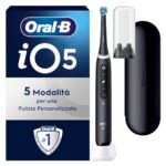 Oral-B Spazzolino Elettrico Ricaricabile iO 5 Nero, 1 Spazzolino Elettrico, 1 Testine, Custodia Da Viaggio, iO 5 per una Pulizia Denti Efficace, Sensore di Pressione, Gengive Protette is available on Amazon at best discounted online price. Original price of this product is € 99.99. You can buy this product at discounted rate € 89.99.