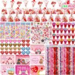Phaorui 268 Pcs Kids Valentines Day Gifts for School Classroom Exchange Valentines Goodie Bags Stuffers Valentines Day Cards for Kids Party Favors Class Treats Valentines Stationery Set