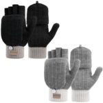 Pleneal 2 Pairs Fingerless Gloves for Women Men – Womens Winter Gloves, Convertible Half Finger Knit Gloves for Cold Weather