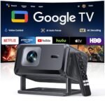 Proiettore 4K【Google TV/Compatibile con Netflix】Videoproiettore Auto Focus e 6D Keystone Projector a Focale Corta Proiettore Portatile WiFi Bluetooth Proiettori Rotabile Home Cinema per Casa e Esterno