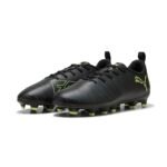 Puma Future 8 Play Fg/AG JrSoccer – Scarpe Unisex per Bambini, Puma Nero Fizzy Verde Chiaro Terreno, 5 UK