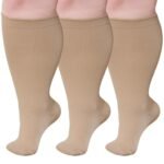 PUTUO Calze a Compressione Graduata da Uomo: Calzini a Compressione Gambaletti Donna Calze Contenitivi Taglie Forti per Corsa Viaggi Gravidanza Viaggi in Aereo beige 3XL 3 Paia