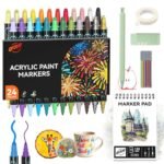 QFOUR Art Supplies, 24 Colors Acrylic Markers with Marker Pad, Art Supplies for Adults, Drawing Kit, Dual Tip Paint Markers for Wood, Teenager Gift