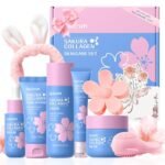 QUIYUM Set Viso Sakura Collagen, Kit Skincare Completo Donna, Routine Glass Skin, Set Regalo da 8 Pezzi per la Cura della Pelle, Idratante, Rassodante, Illuminante