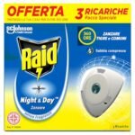 - Raid Night & Day offre, con un unico prodotto, una protezione continua contro zanzare, zanzare tigre e zanzare della febbre gialla.
