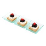 - ELEGANT SERVING: Exude elegance at your next event with our sophisticated rectangle seagreen plastic terzetto mini plates. Combine with our clear terzetto lid (ASIN: B00DOPO2HU) for easy delivery.