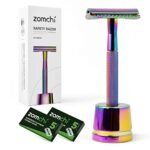 - EMBRACE CLOSING SHAVING – Break free from disposable plastic razors with ZOMCHI’s metal razor and replaceable double-edged blades, promoting sustainability without compromising quality.