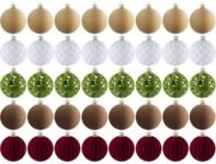 - Velvet Ornament Set:includes 40pieces 2.36inch christmas tree decorations , consisting of 8 green velvet ornaments, 8 burgundy velvet ornaments, 8 white flocked ornaments, 8 brown flocked ornaments, and 8 beige velvet ornaments. With a rich selection of colors, you can easily mix and match to create exquisite decorations that reflect your personal style, suitable for any festive occasion.