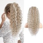 SEIKEA Ponytail Extension, PT005 Isabella 22″ Long Bohemian Curly Drawstring Ponytail, Light Fluffy Multi-Layered Clip in Hair Extensions, Natural Soft Synthetic Hairpiece, Medium/White Blonde