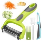Senbowe Julienne Peeler, Potato Vegetable Peeler for Kitchen, I and Y Potato Peelers for Apple Fruit Carrot Zucchini Cucumber Veggie, 3 in 1 Blade Spin Design, Anti-Slip Handle