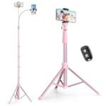 SENSYNE 88″ Phone Tripod & Selfie Stick, Extendable Cell Phone Tripod Stand with Wireless Remote and Phone Holder, Pink