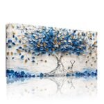 SERIMINO Quadri Moderni Soggiorno Grandi, Quadro Albero Della Vita, Stampe Naturale da Parete, Blu Dorata Piante Decorativa Murali per Salotto Camera da Letto Corridoio Ufficio 59×119 cm