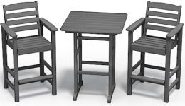 SERWALL Balcony Adirondack Chairs and Table 3 Pieces Set, Adirondack Bar Height Chairs Set of 2 and Bar Table, Outdoor Bar Stools Set, Gray is available on Amazon at best discounted online price. Original price of this product is $ 319.99. You can buy this product at discounted rate $ 249.99.