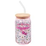 Silver Buffalo Sanrio Hello Kitty Neon Fruits Rainbows and Hearts Pattern Glass Jar Tumbler with Bamboo Lid and Glass Straw, 16 Ounces is available on Amazon at best discounted online price. Original price of this product is $ 18.990000000000002. You can buy this product at discounted rate $ 9.69.
