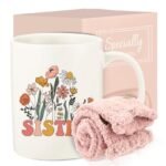 - Sister Gifts for Sister: Use this gift to express her unique presence towards you! The gift box includes an 11 oz coffee cup and a pair of socks. The cup is printed with the words “SISTER” and decorated with exquisite flower patterns. Simple and eye-catching design is very suitable for intimate moments between sisters