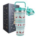• LEAK-PROOF FLIP STRAW LID: Our 30 oz christmas insulated tumbler with handle features a flip-up straw lid to make sipping quick and easy. And it won’t leak when it’s fully closed, making it ideal for gym sessions, commutes, and outdoor activities.