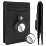 Slim AirTag Wallet Mens/Women (Built-In Tracker), Minimalist Front Pocket Leather Wallets for Men, Credit Card Holder for 8-12 Cards, Air Tag Wallet with Money Clip & ID Window, Gift for Men, Black