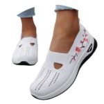 Sneakers Donna,Scarpe Ortopediche Donna Ricamo Fiore Senza Lacci Sneakers Morbide Comode Ginnastica Scarpa Traspiranti Estive Sportive Sneakers Leggere Antiscivolo Camminare Bianco 38