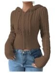 SOLY HUX Women’s Crop Cardigan Sweater Cable Knit Zip Up Hoodies Long Sleeve Fall Jacket Y2k Outerwear Coffee Brown Medium