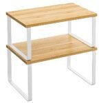 SONGMICS Scaffale Portaspezie, Set di 2 Organizzatori da Cucina Espandibili, Scaffale da Cucina Impilabile, Metallo e Legno Ingegnerizzato, Bianco Nuvola e Beige Naturale KCS02NW