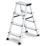 • [Leggera e portatile] La struttura in alluminio è robusta, ma non per questo meno leggera, la scala a 4 gradini pesa solo 3,1 kg e può essere trasportata con facilità