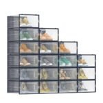 - [Cosa ricevi] Pacco da 18 scatole per scarpe trasparenti con sportello frontale, design impilabile e pieghevole, fori di ventilazione; presto potrai dire addio a mucchi di scarpe con queste scatole che si piegano facilmente e non occupano spazio quando non sono in uso