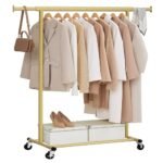 SONGMICS Stand Appendiabiti con Ruote, Attaccapanni Estensibile per Carichi Pesanti, Portata Totale 100 kg, 45 x (92-132) x 161,5 cm, Facile da Montare e Spostare, Oro Pallido HSR013A01