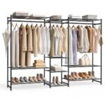 - Capiente: 3 aste superiori per appendere capi lunghi; 10 ripiani adatti per organizzare vestiti piegati, scatole ecc.; 4 ganci a S per appendere cappelli o borse; l’ampia distanza dal pavimento consente di riporre le scarpe