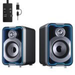 SOULION 2.0 Computer Speakers, 10W USB-Powered Bluetooth Wired PC Speakers with Easy-Control Pod for Desktop, Tiny Desk Soundbar with 5 Mirror-Like LED Light Modes for Monitor Laptop – Black