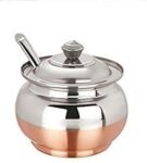 Stainless Steel Copper Bottom Ghee Pot Ghee Container with Spoon and Lid Ghee Dispenser Serve ware Bowls Multipurpose Storage Pot for Kitchen