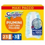 Swiffer Duster Piumini Cattura Polvere, 23 Piumini e 3 Panni Lavapavimenti, Cattura e Intrappola Polvere e Sporco, Raggiunge I Punti più Difficili della Casa, Maxi Formato