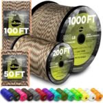 - MULTIPURPOSE: Versatile, flexible and of a great strength, para cord is very multi-functional. It is used as a tent cord to set up tents, safely secure hammock or hang heavy items such as bikes and kayaks in your garage or basement. Serves as a safety rope in emergency situations. Ideal for crafting custom accessories: lanyards, bracelets, dog collars, keychains, belts, wrapping axes, knives, tools & other DIY projects.