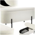 tectake® Panca Imbottita in Tessuto Bouclé, Panca Contenitore con Pratico Spazio Interno, Panca Comoda Pouf Contenitore con Gambe in Acciaio, Panca da Ingresso Design Scandinavo – Crema/Bianco