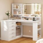 - 【Design 2 in 1】La struttura a L integra una postazione trucco e una scrivania. Un lato per la bellezza, l’altro per lo studio/lavoro. L’estensione laterale funge anche da comodino per riviste o lampade.