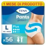 • ARTICOLO CONSEGNATO: 1 confezione scorta mensile con 4 pacchi x 14 TENA Pants Plus Large (giro fianchi: da 100 a 135 cm) / 56 mutandine assorbenti per perdite urinarie