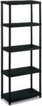 • Caratteristiche: scaffale in plastica (polipropilene) a 5 ripiani, 4 piedi d’appoggio; portata massima del ripiano di 25 kg