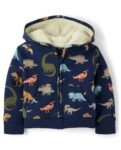 The Children’s Place,Baby Boys,and Toddler Long Sleeve, Sherpa Lined, Zip-Front Hoodie Sweatshirt,Tidal Dinos,9 Months,12 Months
