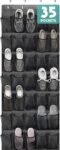 Tiblue Over The Door Shoe Organizers 35 Mesh Pockets Hanging Shoe Organizer Shoe Rack For Closet Entryway Bedroom Bathroom Pantry Shoe Holder, Men Sneakers, Women High Heeled Shoes, Flip Flops Black