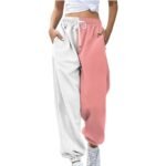 Todays Daily Deals Clearance Lightening Deals,Women Sherpa Lined Sweatpants,Sweatpants Women Fashion Women’s Loose Breathable Colorblocking Casual Pants Side Pockets Leg Womens,Pink,Xx-Large