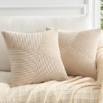 Topfinel Federe Cuscini 60×60 Cachi in Velluto a Coste Copricuscini con Cerniera Invisibile Motivo A righe per Soggiorno Camera Balcone Esterno 2 Pezzi
