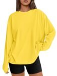 Trendy Queen Womens Oversized Long Sleeve T Shirts 2025 Basic Crewneck Tee Fall Tops Casual Workout Y2K Clothes Yellow M