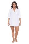 Trimshaper Women’s, Button Down Beach Shirt, White, Large