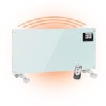 TRINITI Stufa Elettrica Basso Consumo Termostato, Potenza Regolabile, Elegante VETRO TEMPERATO, Display LED, Timer, Silenzioso, Sistema Protezione Sicurezza Multiplo, Ruote + Montaggio a Parete BIANCO